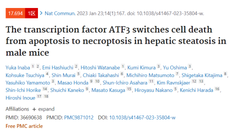 这一研究最终得出结论:转录因子ATF3在雄性小鼠肝脂肪变性这种疾病中,可以将细胞从凋亡转化成坏死。