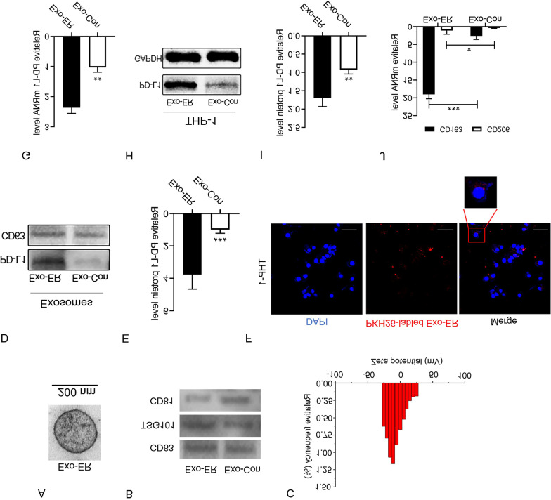 D-F:Western blot检测外泌体中PD-L1含量在内质网应激后升高