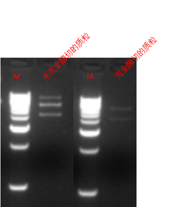 图一:构建了目的基因的质粒未完全酶切和完全酶切对比图
